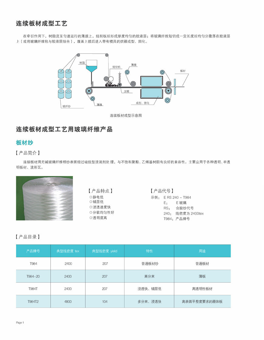 连续板材成型工艺用玻璃纤维说明书