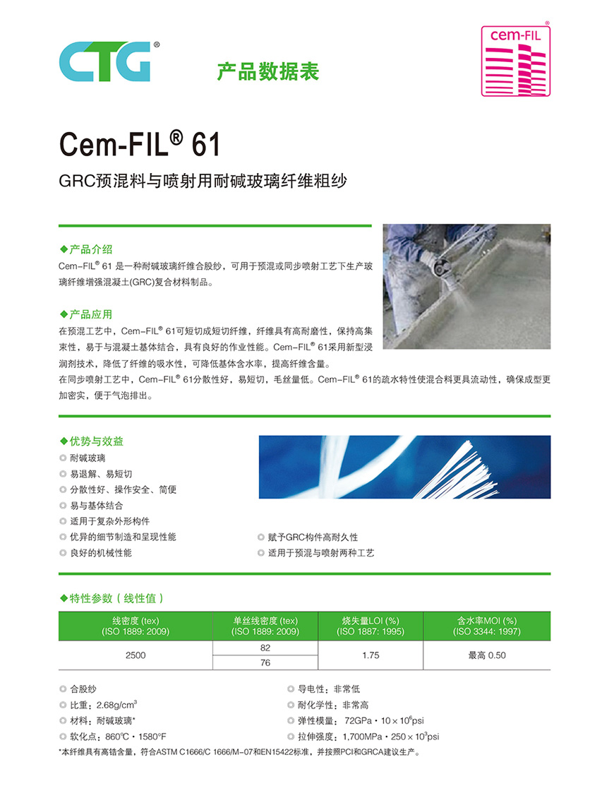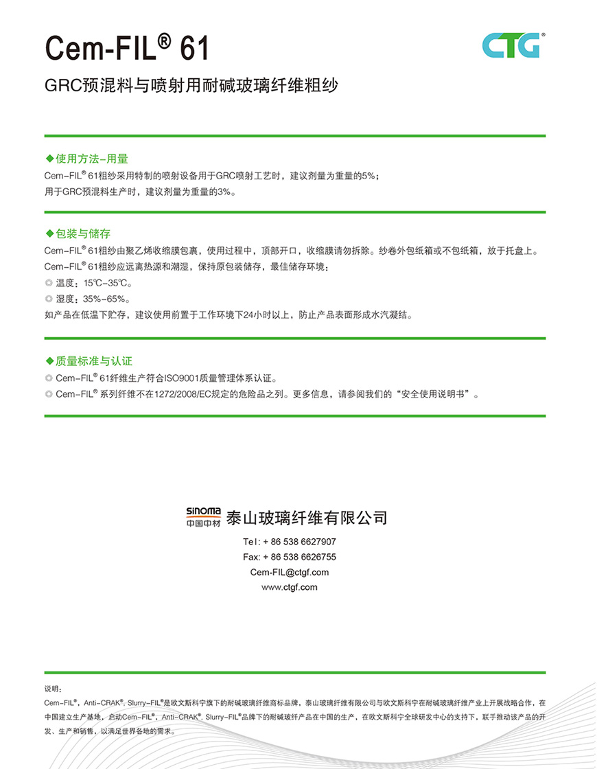 GRC预混料与喷射用耐碱玻璃纤维粗纱