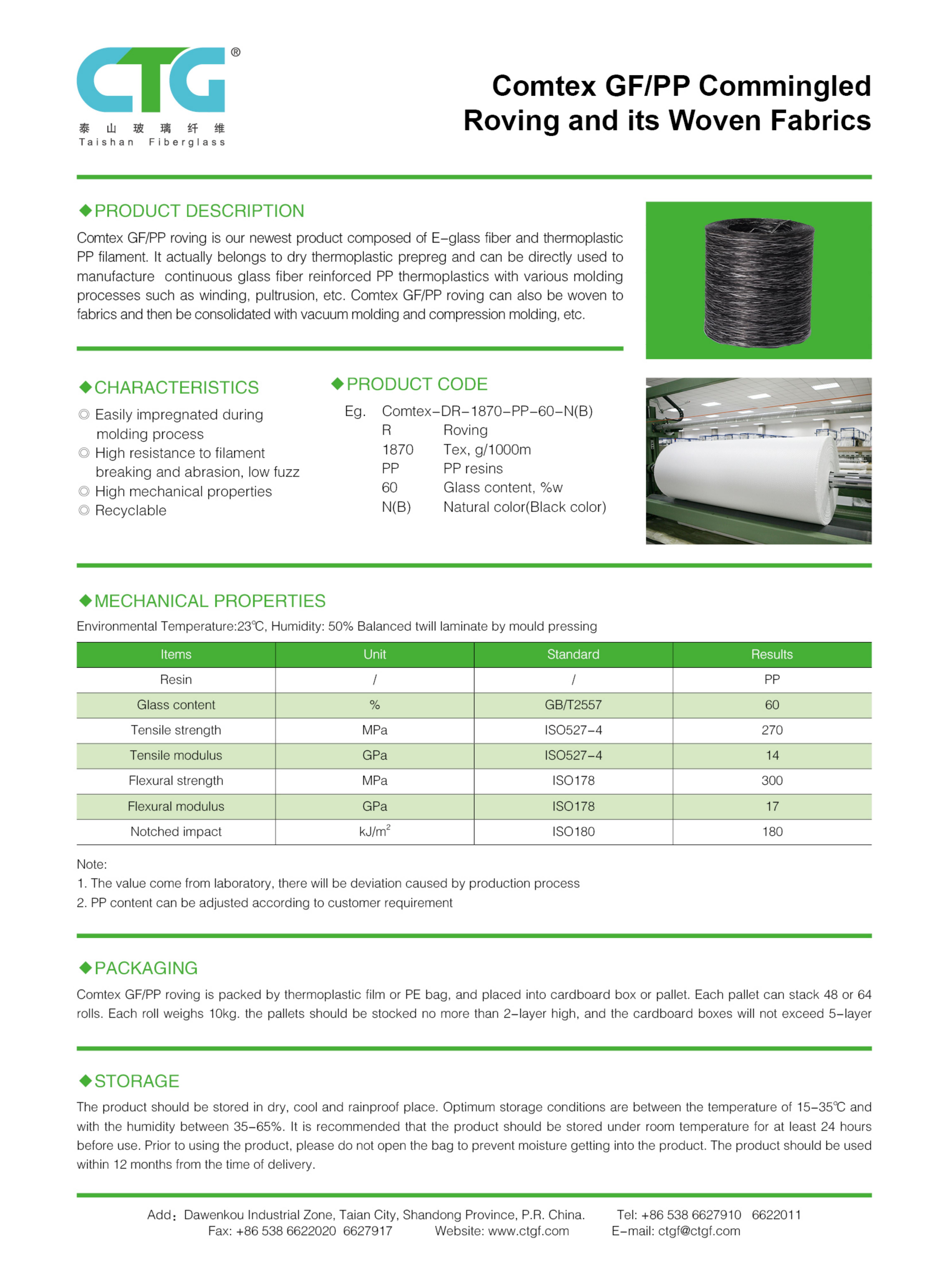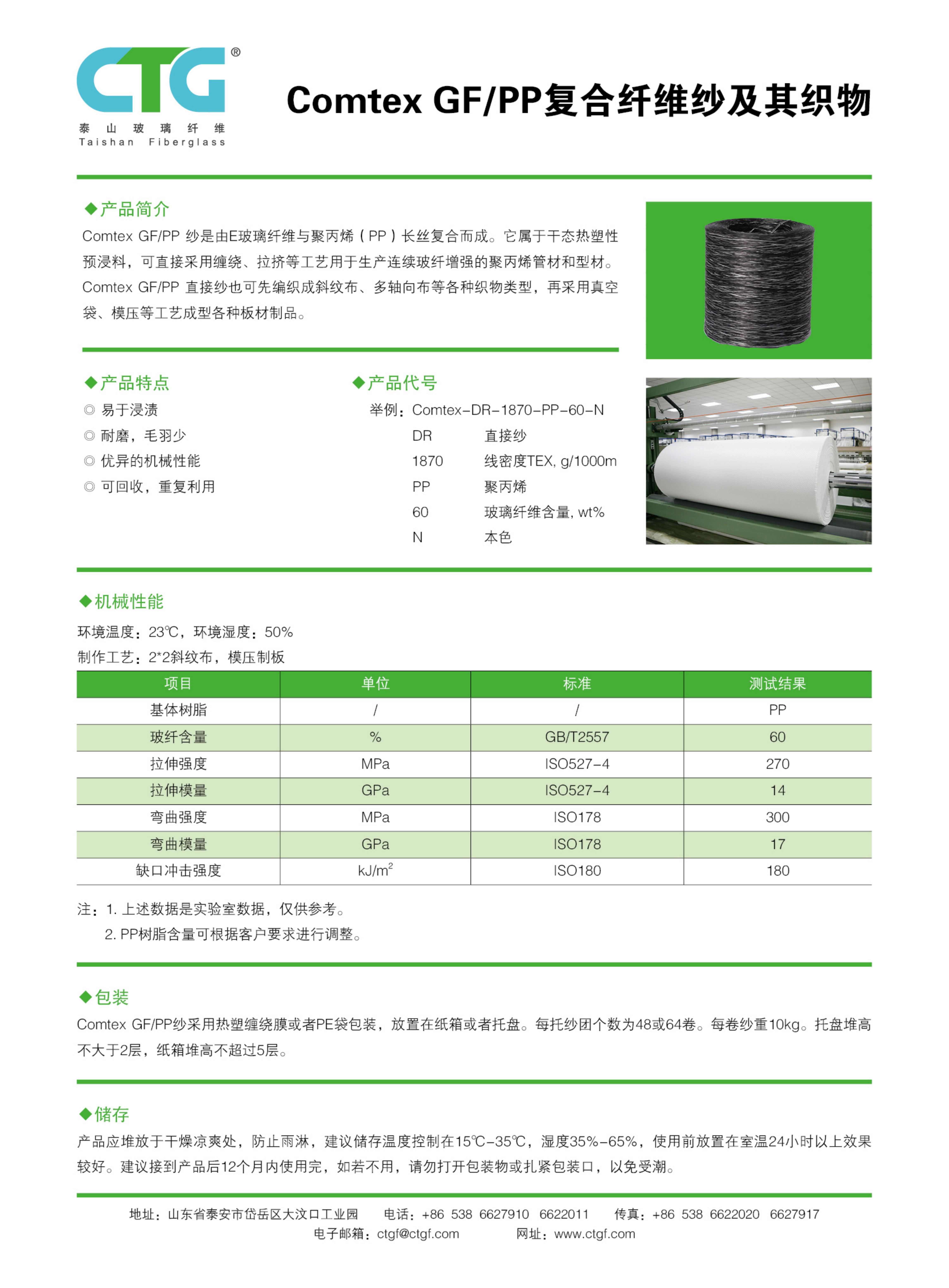 Comtex GF/PP复合纤维纱及其织物