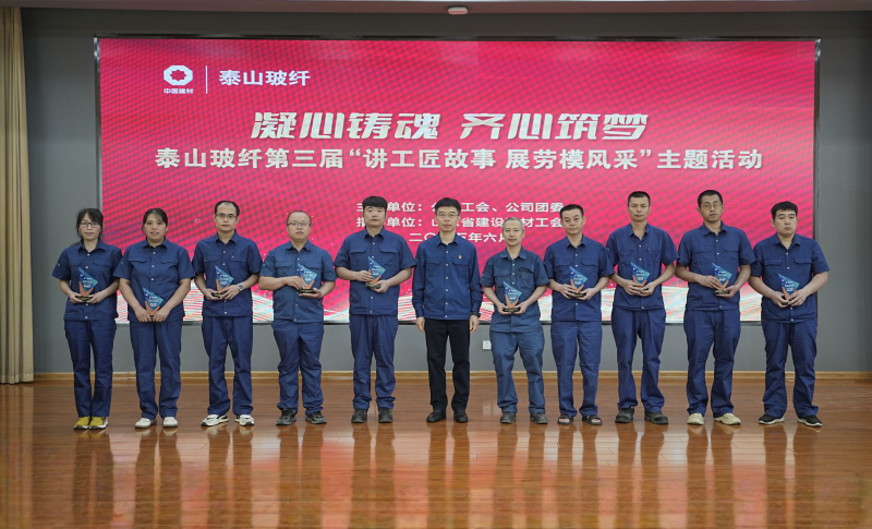 在弘扬劳动精神环节,对泰山玻纤2024年度“岗位练兵强技能 提质增效创一流”拉丝、络纱劳动竞赛活动中,涌现出的年度冠军进行了表彰。公司自2021年开展该项竞赛活动,4年来,为公司选拔了一批优秀技能人才,他们凭借精湛技艺和丰富经验,发挥示范引领作用,培养和带动了一大批优秀技能工人。